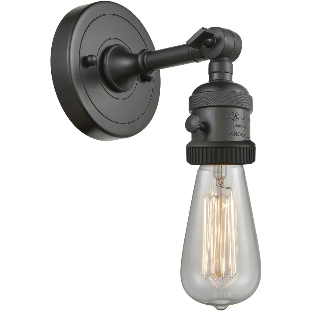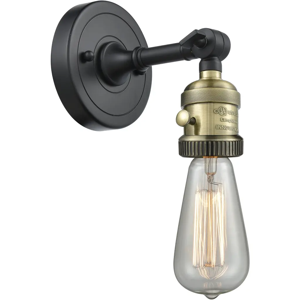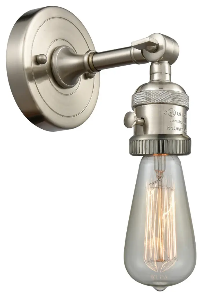 The Bare Bulb 1 Light Sconce is part of the Franklin Restoration Collection. Solid Brass 180 Degree Adjustable Swivel with internal teeth that lock in at 5 degree intervals With Engraved Cast Cup. 3 Way (High-Low-Off) Switch Included on Socket