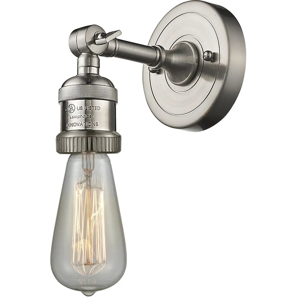 The Bare Bulb 1 Light Sconce is part of the Franklin Restoration Collection. Solid Brass 180 Degree Adjustable Swivel with internal teeth that lock in at 5 degree intervals With Engraved Cast Cup