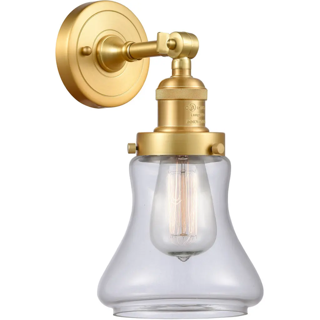 The Bellmont 1 Light Sconce is part of the Franklin Restoration Collection. Solid Brass 180 Degree Adjustable Swivel with internal teeth that lock in at 5 degree intervals With Engraved Cast Cup
