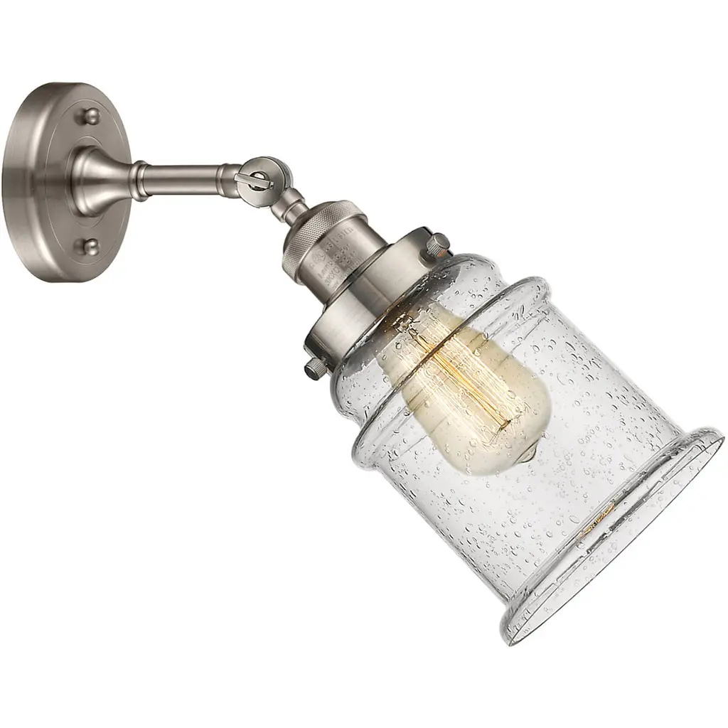 Franklin Restoration Canton 1 Light 7 Inch Brushed Satin Nickel Sconce Wall Light In Seedy Glass, Franklin Restoration