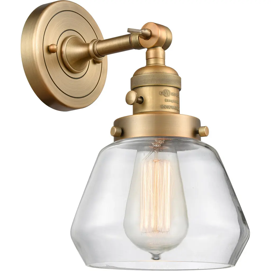 The Chatham 1 Light Sconce is part of the Franklin Restoration Collection. Solid Brass 180 Degree Adjustable Swivel with internal teeth that lock in at 5 degree intervals With Engraved Cast Cup. 3 Way (High-Low-Off) Switch Included on Socket