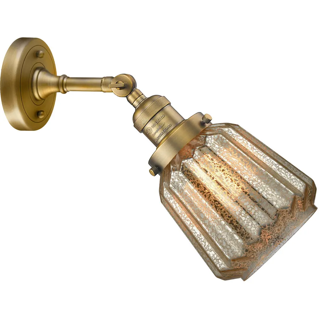 The Chatham 1 Light Sconce is part of the Franklin Restoration Collection. Solid Brass 180 Degree Adjustable Swivel with internal teeth that lock in at 5 degree intervals With Engraved Cast Cup