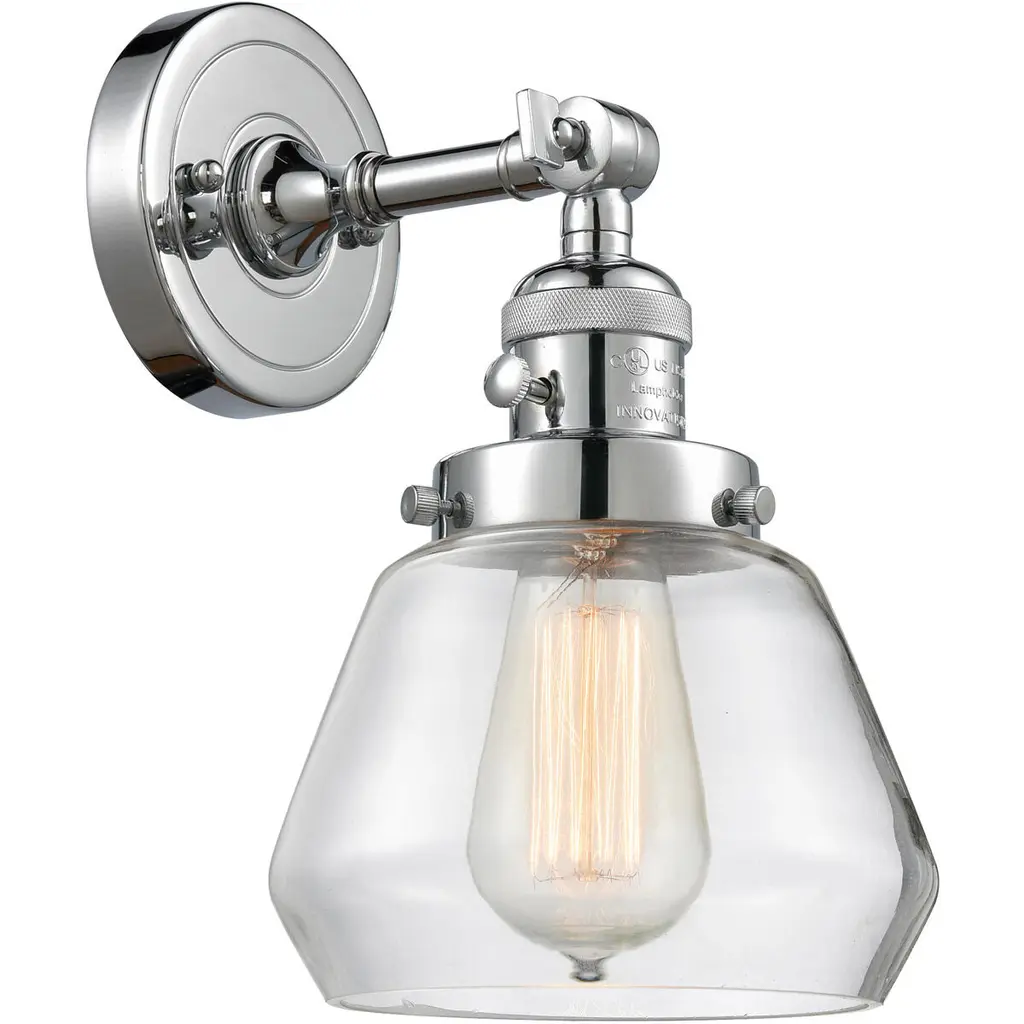 The Chatham 1 Light Sconce is part of the Franklin Restoration Collection. Solid Brass 180 Degree Adjustable Swivel with internal teeth that lock in at 5 degree intervals With Engraved Cast Cup. 3 Way (High-Low-Off) Switch Included on Socket