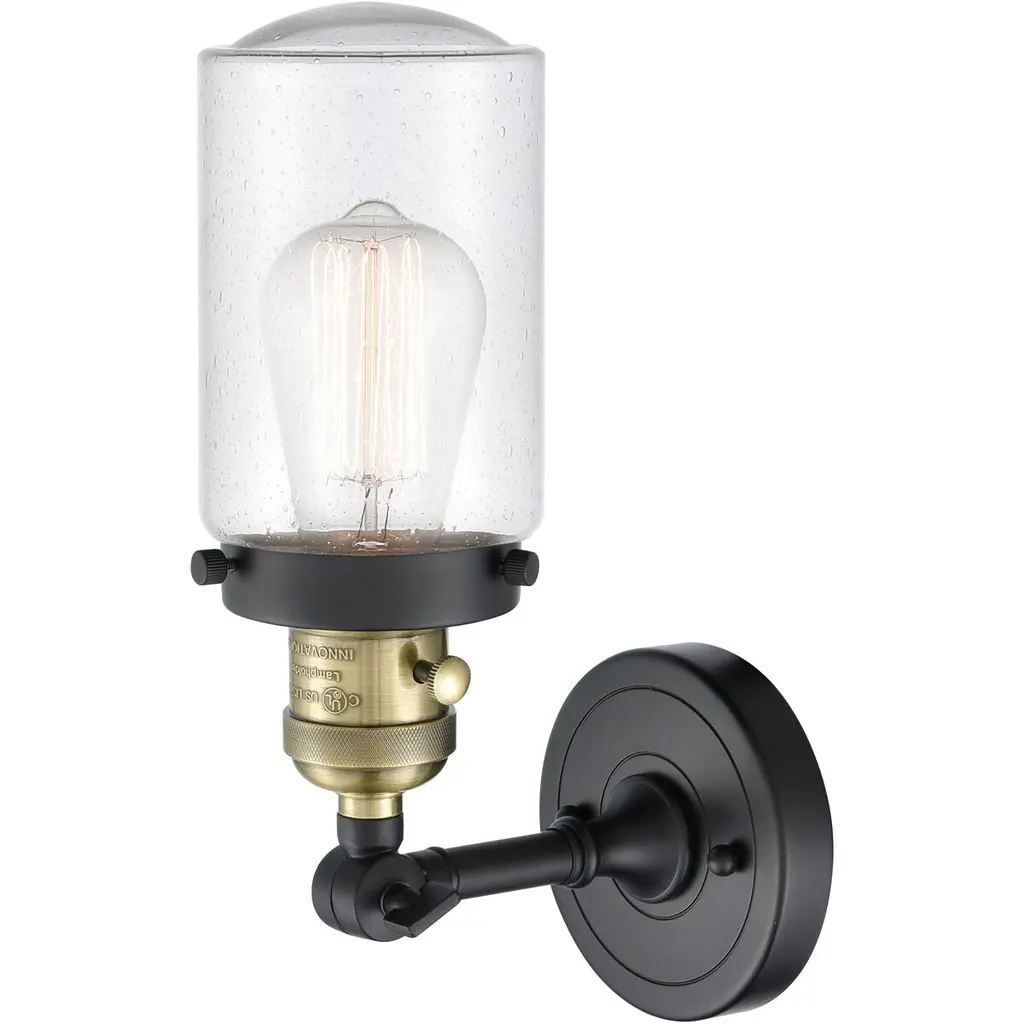Franklin Restoration Dover 1 Light 5 Inch Black Antique Brass Sconce Wall Light In Seedy Glass, Franklin Restoration