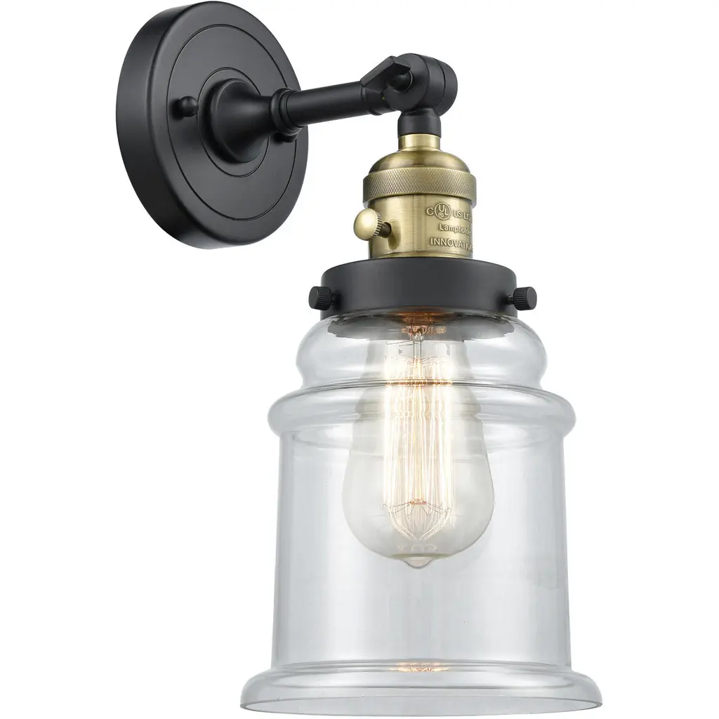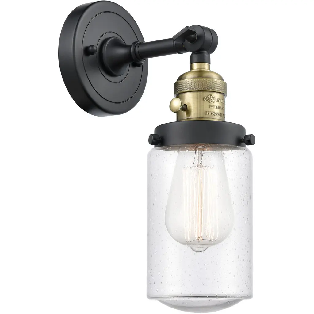 The Dover 1 Light Sconce is part of the Franklin Restoration Collection. Solid Brass 180 Degree Adjustable Swivel with internal teeth that lock in at 5 degree intervals With Engraved Cast Cup. 3 Way (High-Low-Off) Switch Included on Socket