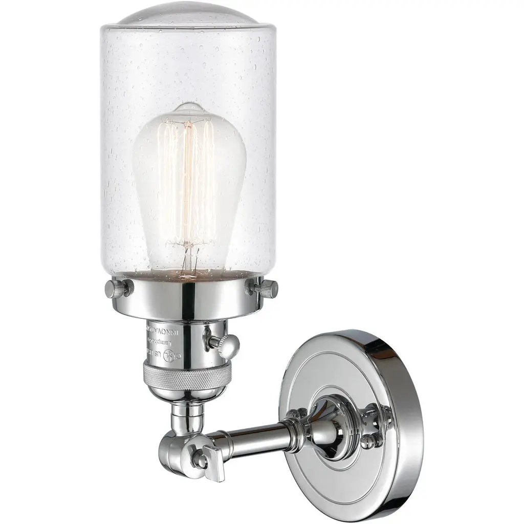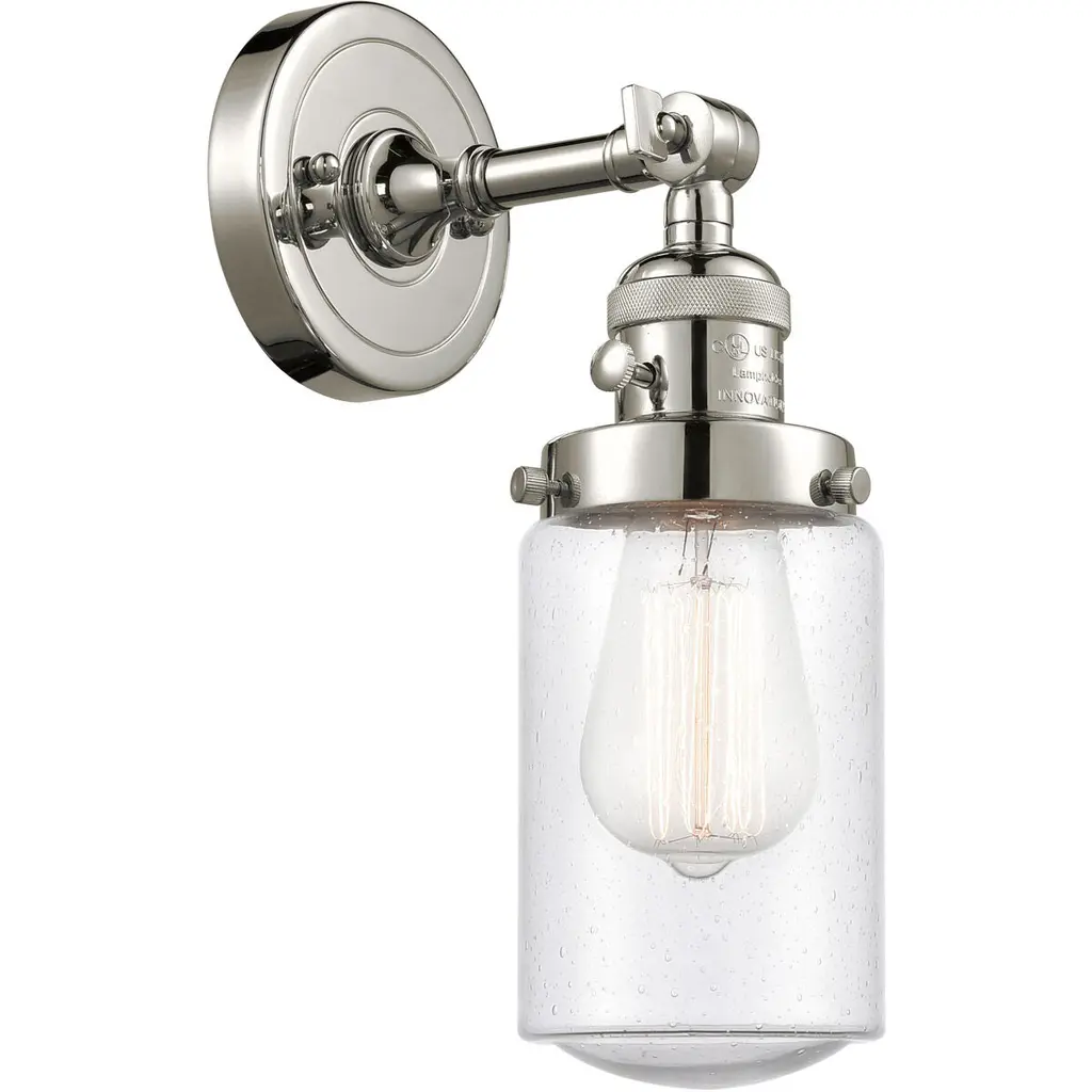 The Dover 1 Light Sconce is part of the Franklin Restoration Collection. Solid Brass 180 Degree Adjustable Swivel with internal teeth that lock in at 5 degree intervals With Engraved Cast Cup. 3 Way (High-Low-Off) Switch Included on Socket