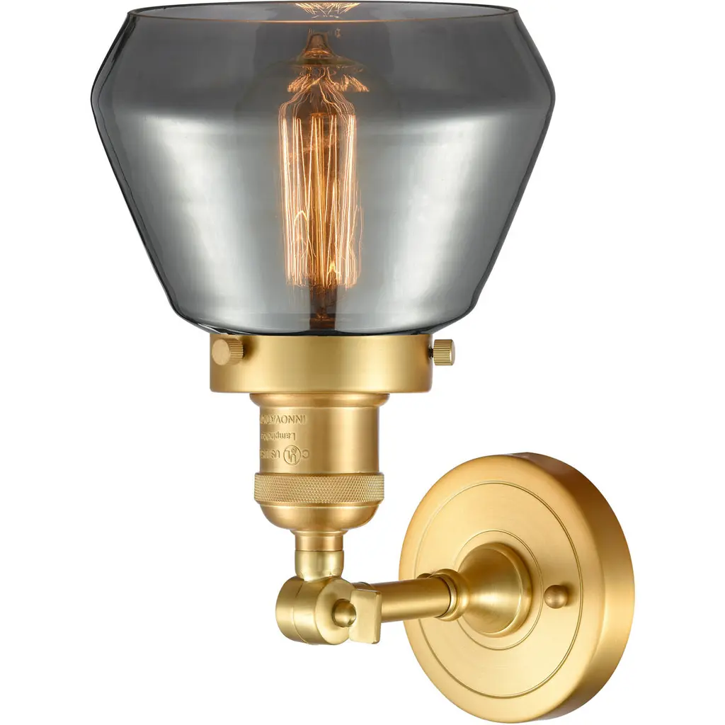 Franklin Restoration Fulton 1 Light 7 Inch Satin Gold Sconce Wall Light In Plated Smoke Glass, Franklin Restoration