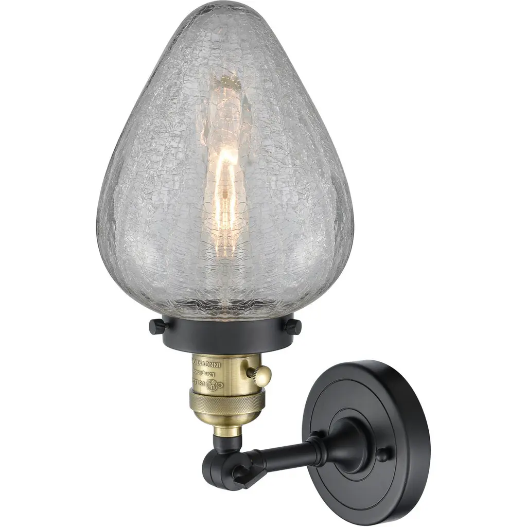 The Geneseo 1 Light Sconce is part of the Franklin Restoration Collection. Solid Brass 180 Degree Adjustable Swivel with internal teeth that lock in at 5 degree intervals With Engraved Cast Cup. 3 Way (High-Low-Off) Switch Included on Socket