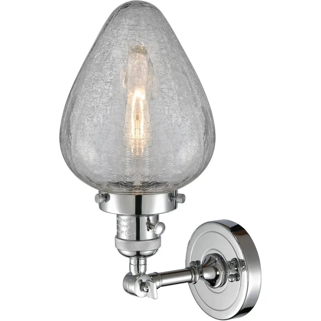 The Geneseo 1 Light Sconce is part of the Franklin Restoration Collection. Solid Brass 180 Degree Adjustable Swivel with internal teeth that lock in at 5 degree intervals With Engraved Cast Cup. 3 Way (High-Low-Off) Switch Included on Socket