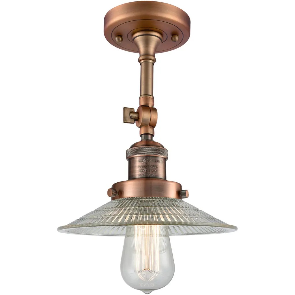 Franklin Restoration Halophane 1 Light 9 Inch Antique Copper Sconce Wall Light In Clear Halophane Glass, Franklin Restoration