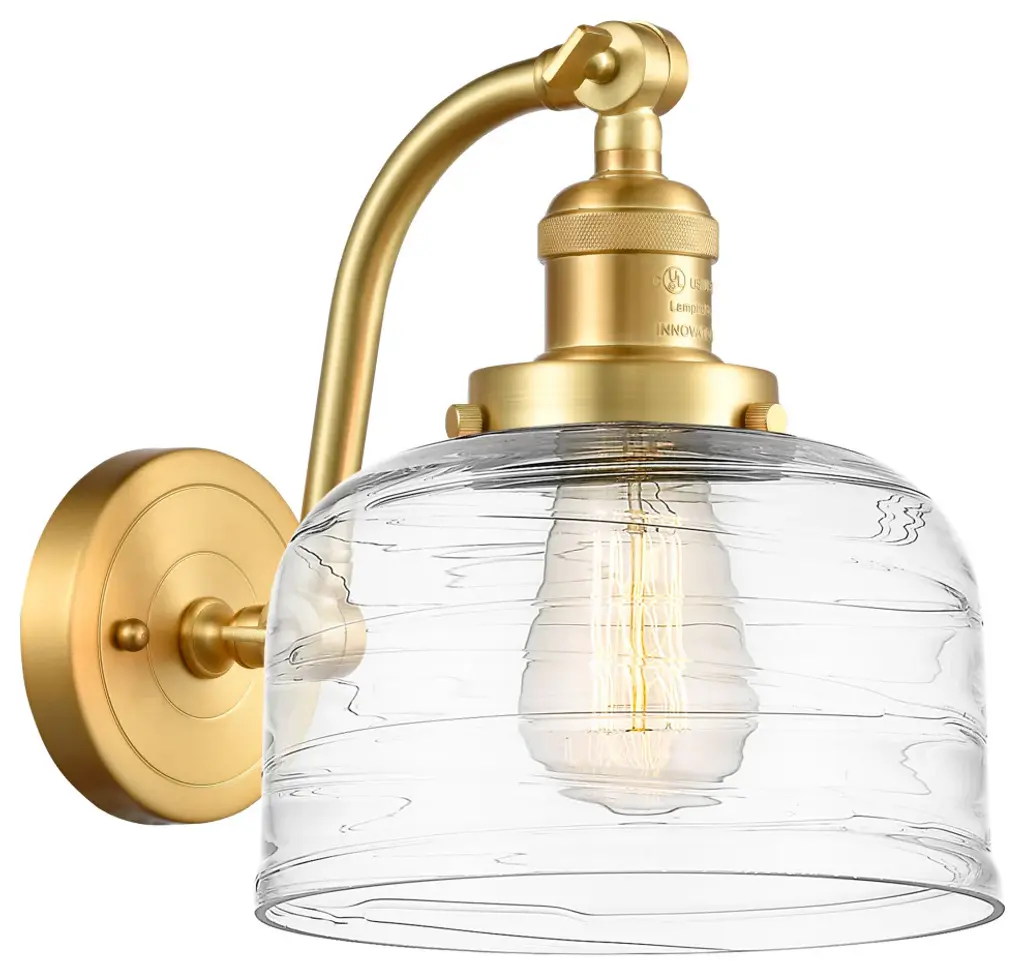 The Large Bell 1 Light Sconce is part of the Franklin Restoration Collection. Solid Brass 180 Degree Adjustable Swivels with internal teeth that lock in at 5 degree intervals