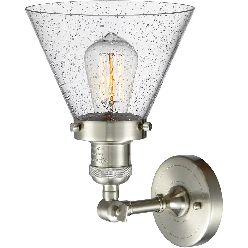 Franklin Restoration Large Cone 1 Light 8 Inch Brushed Satin Nickel Sconce Wall Light In Seedy Glass, Franklin Restoration