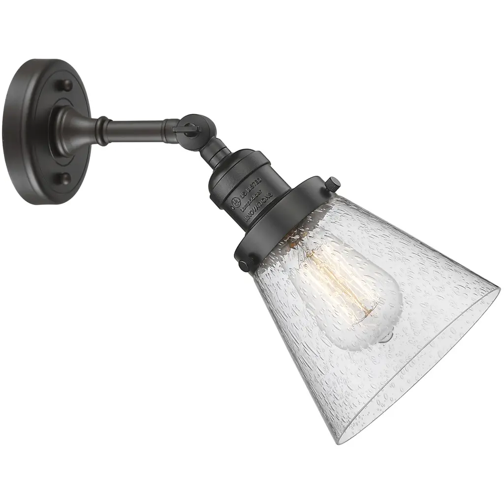 Franklin Restoration Large Cone 1 Light 8 Inch Matte Black Sconce Wall Light In Seedy Glass, Franklin Restoration