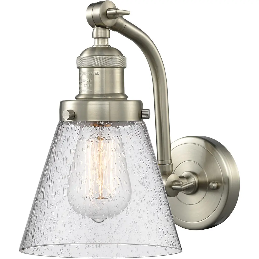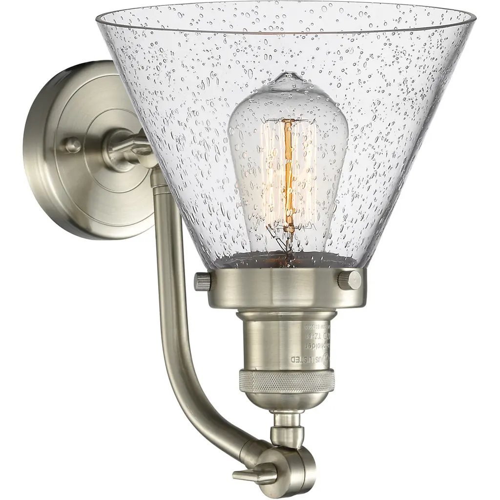 Franklin Restoration Large Cone Led 8 Inch Brushed Satin Nickel Sconce Wall Light In Seedy Glass, Franklin Restoration