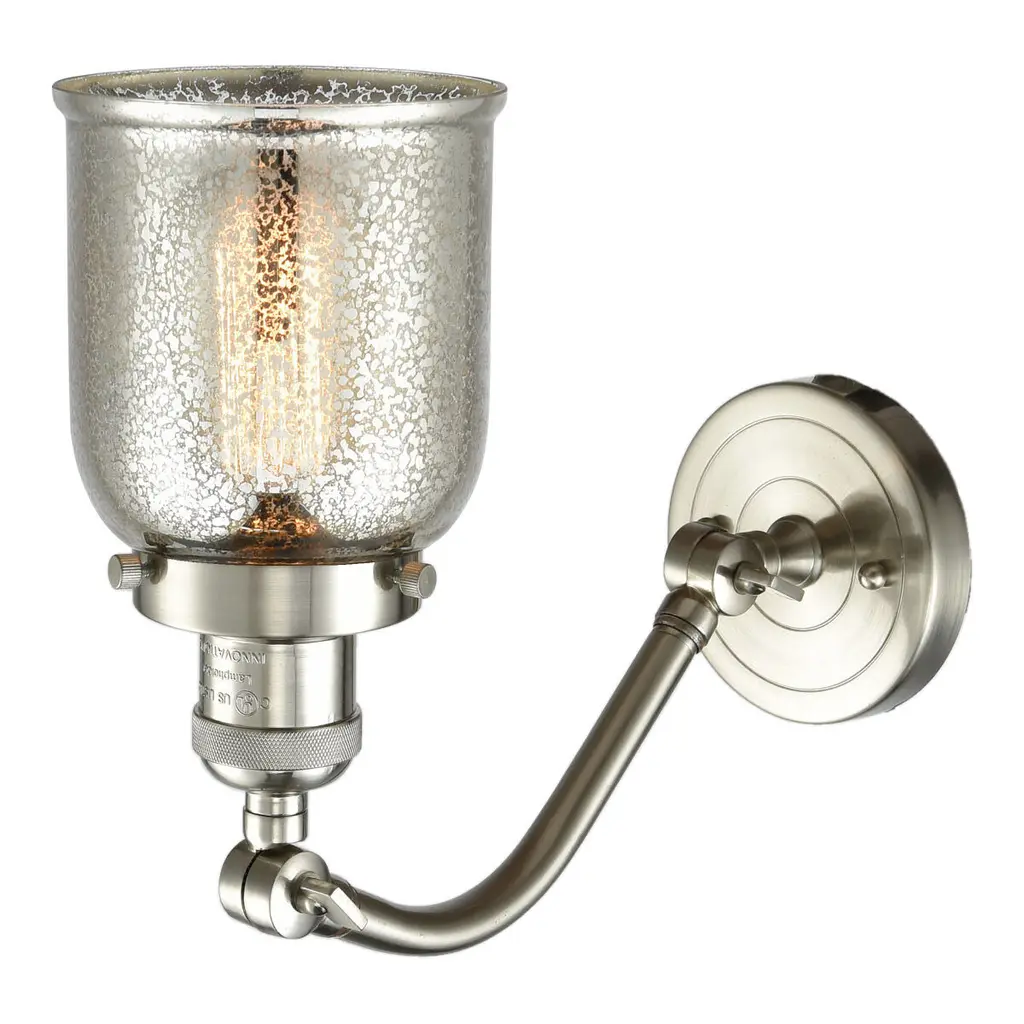 Franklin Restoration Small Bell 1 Light 5 Inch Brushed Satin Nickel Sconce Wall Light In Silver Plated Mercury Glass, Franklin Restoration