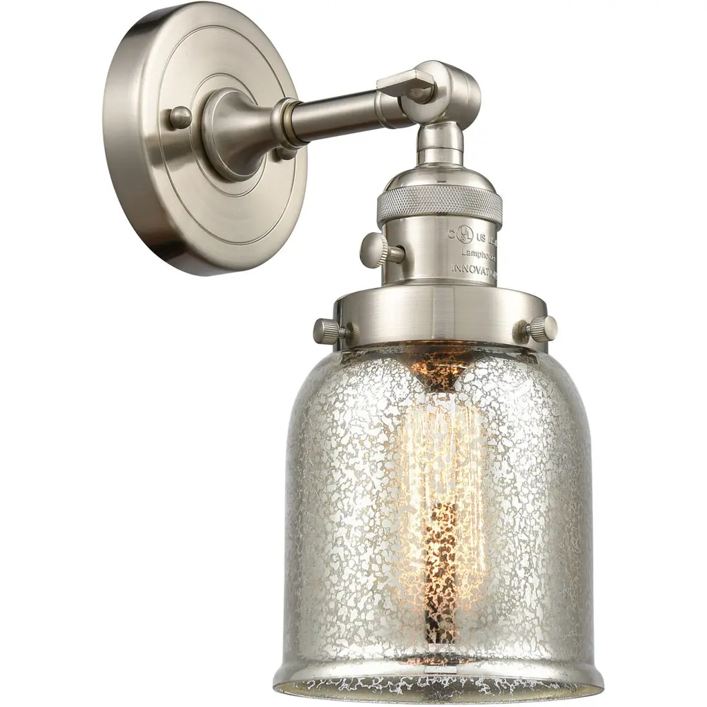 Franklin Restoration Small Bell 1 Light 5 Inch Polished Chrome Sconce Wall Light In Silver Plated Mercury Glass, Franklin Restoration