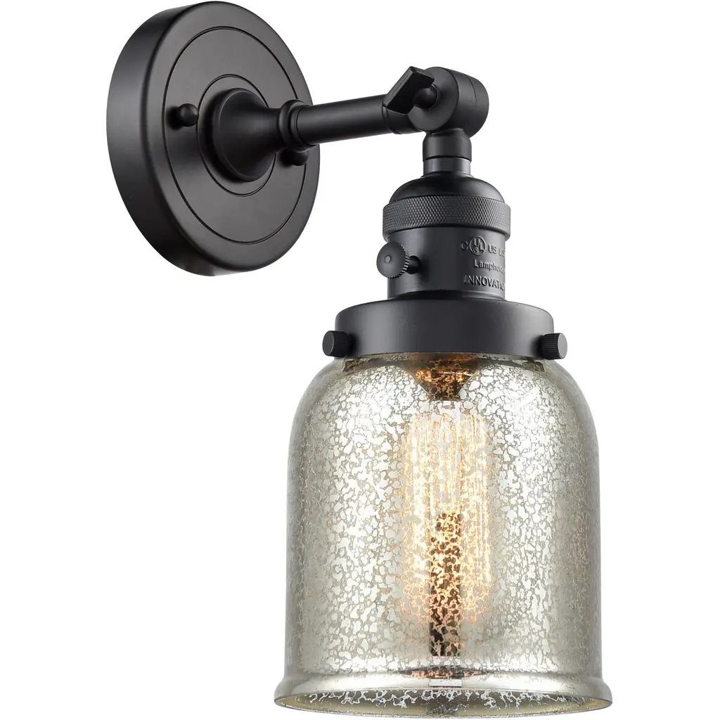 Franklin Restoration Small Bell Led 5 Inch Matte Black Sconce Wall Light In Silver Plated Mercury Glass, Franklin Restoration
