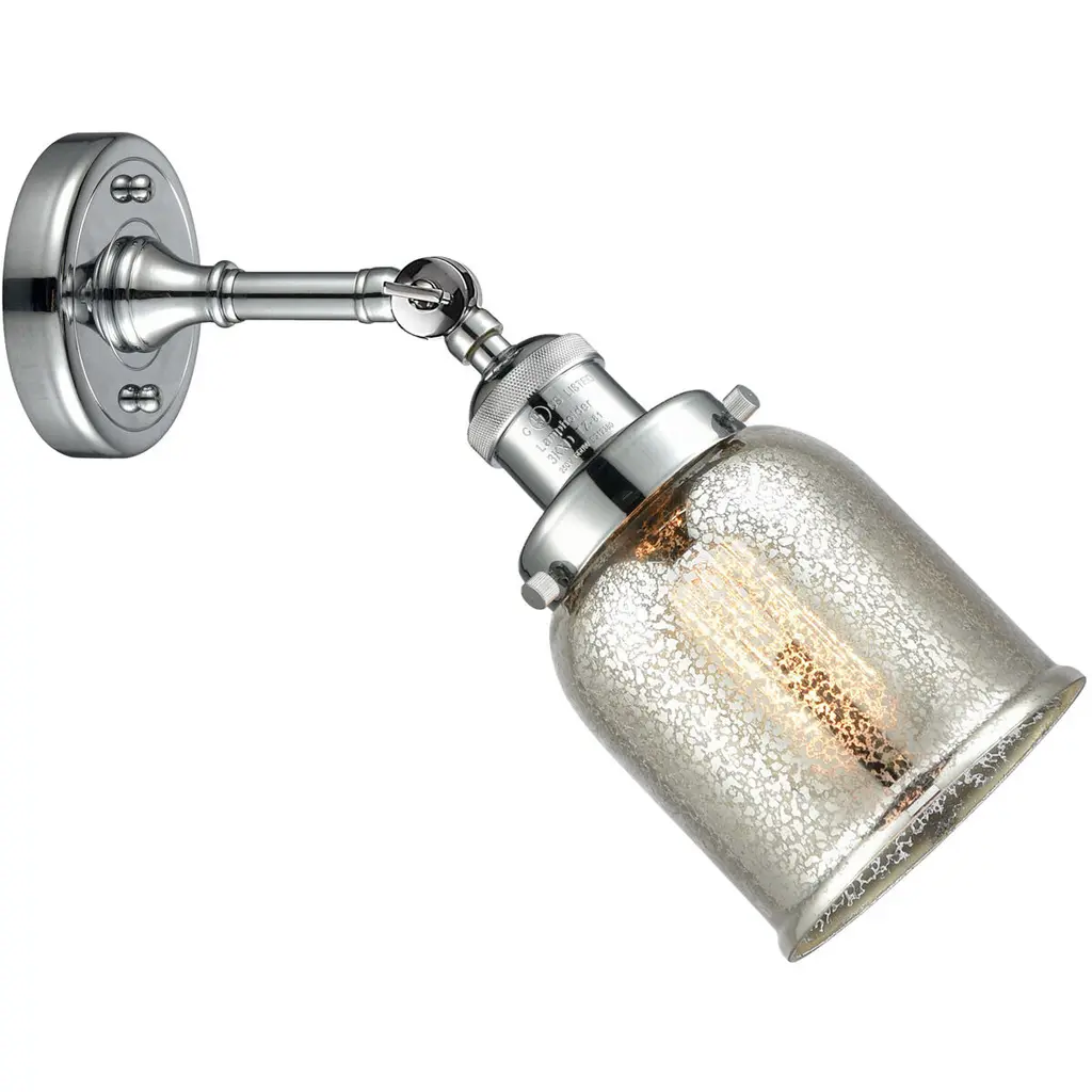 Franklin Restoration Small Bell Led 5 Inch Polished Chrome Sconce Wall Light In Silver Plated Mercury Glass, Franklin Restoration