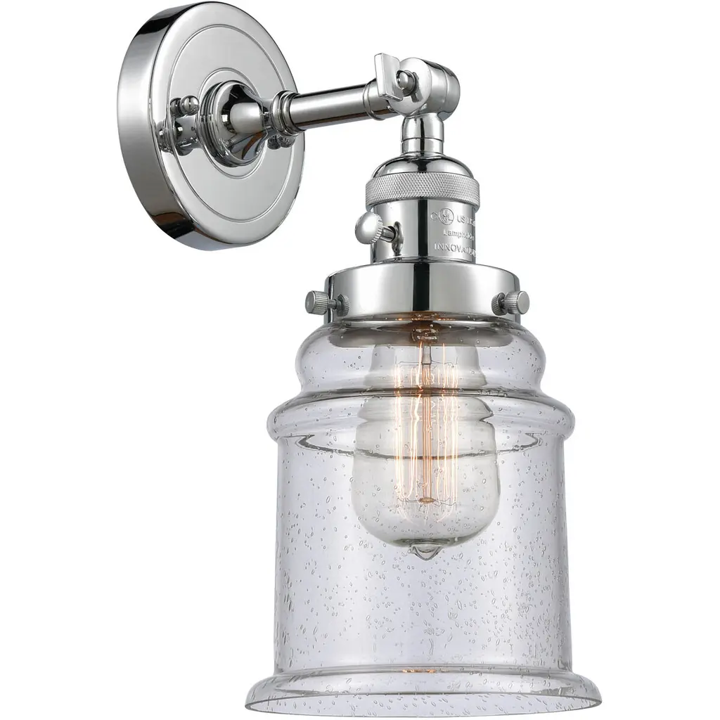 Franklin Restoration Small Canton 1 Light 7 Inch Polished Chrome Sconce Wall Light In Seedy Glass, Franklin Restoration
