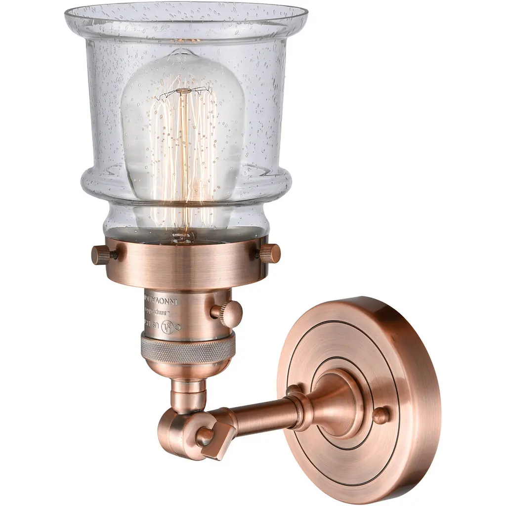 The Small Canton 1 Light Sconce is part of the Franklin Restoration Collection. Solid Brass 180 Degree Adjustable Swivel with internal teeth that lock in at 5 degree intervals With Engraved Cast Cup. 3 Way (High-Low-Off) Switch Included on Socket