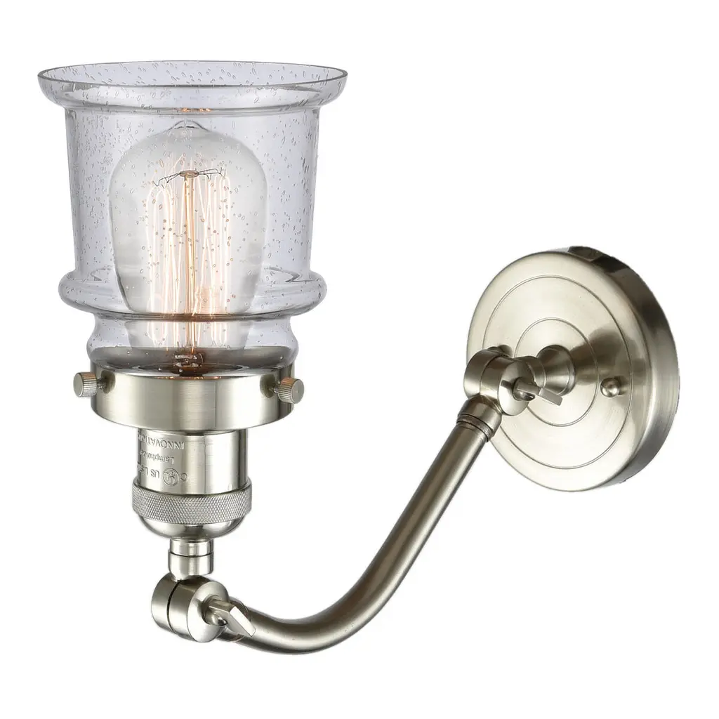 Franklin Restoration Small Canton Led 6.5 Inch Brushed Satin Nickel Sconce Wall Light In Seedy Glass, Franklin Restoration