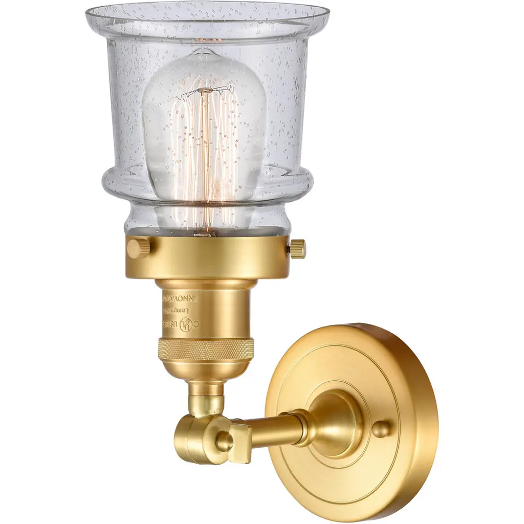 Franklin Restoration Small Canton Led 6.5 Inch Satin Gold Sconce Wall Light In Seedy Glass, Franklin Restoration