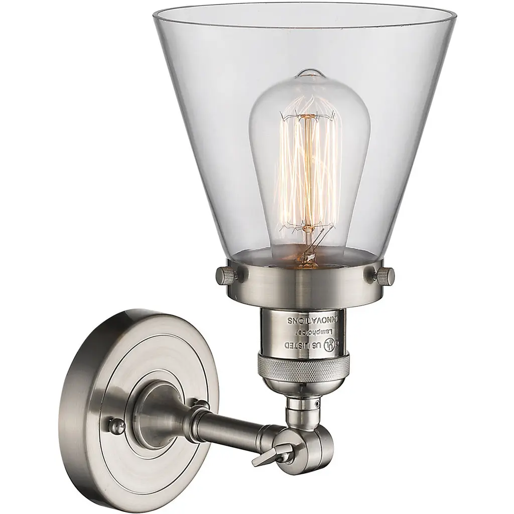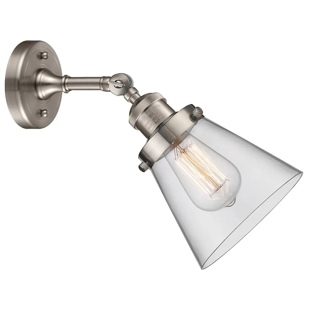 Franklin Restoration Small Cone 1 Light 6 Inch Brushed Satin Nickel Sconce Wall Light In Clear Glass, Franklin Restoration