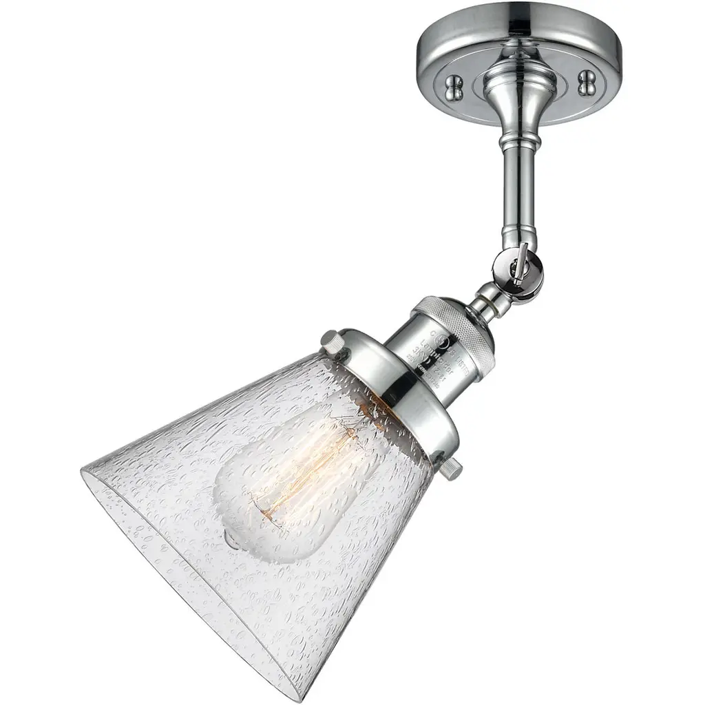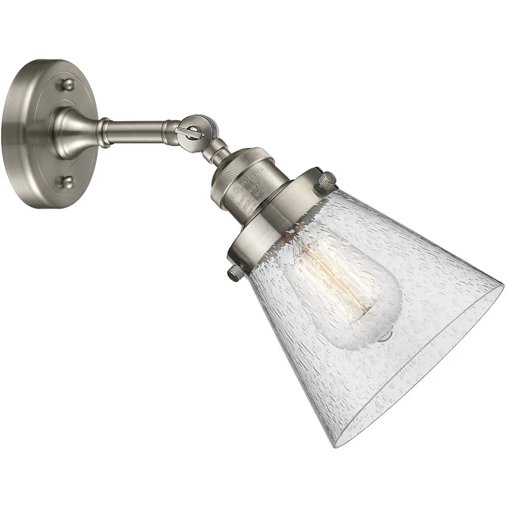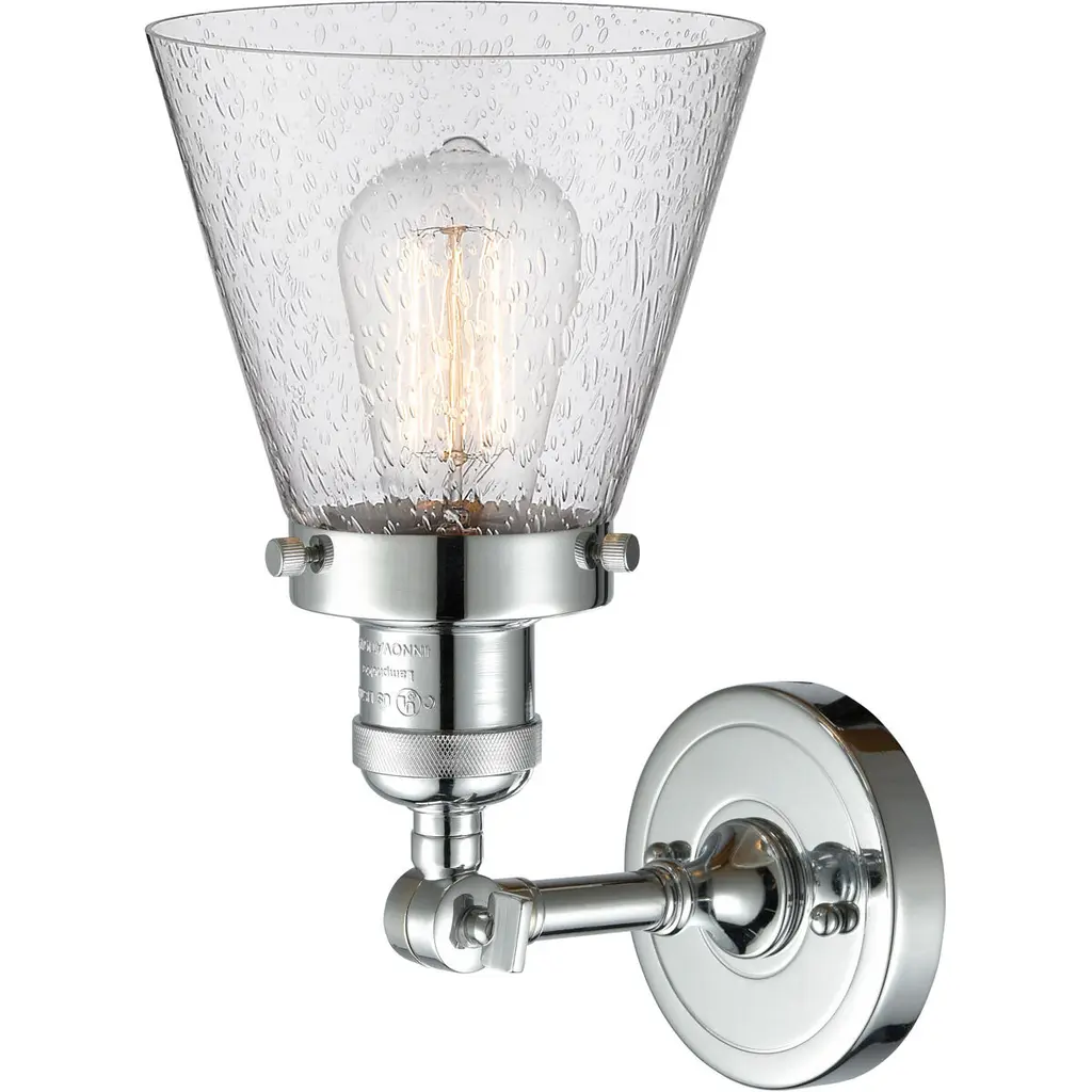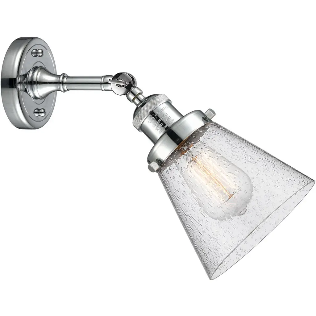 Franklin Restoration Small Cone Led 6.25 Inch Polished Chrome Sconce Wall Light In Seedy Glass, Franklin Restoration