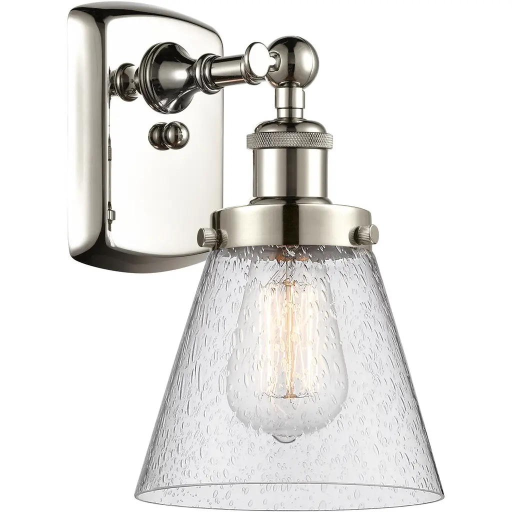 Franklin Restoration Small Cone Led 7 Inch Brushed Satin Nickel Sconce Wall Light In Seedy Glass, Franklin Restoration