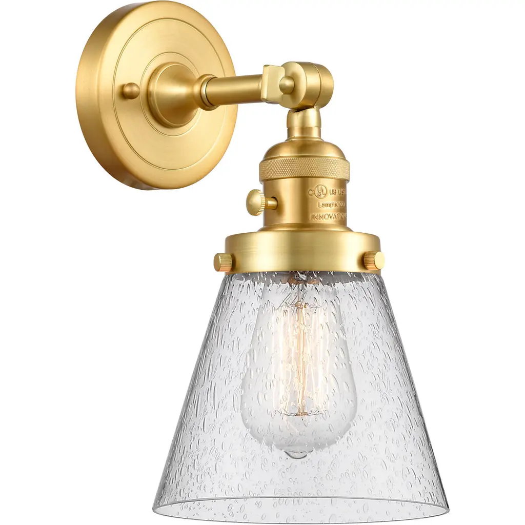 The Small Cone 1 Light Sconce is part of the Franklin Restoration Collection. Solid Brass 180 Degree Adjustable Swivels with internal teeth that lock in at 5 degree intervals