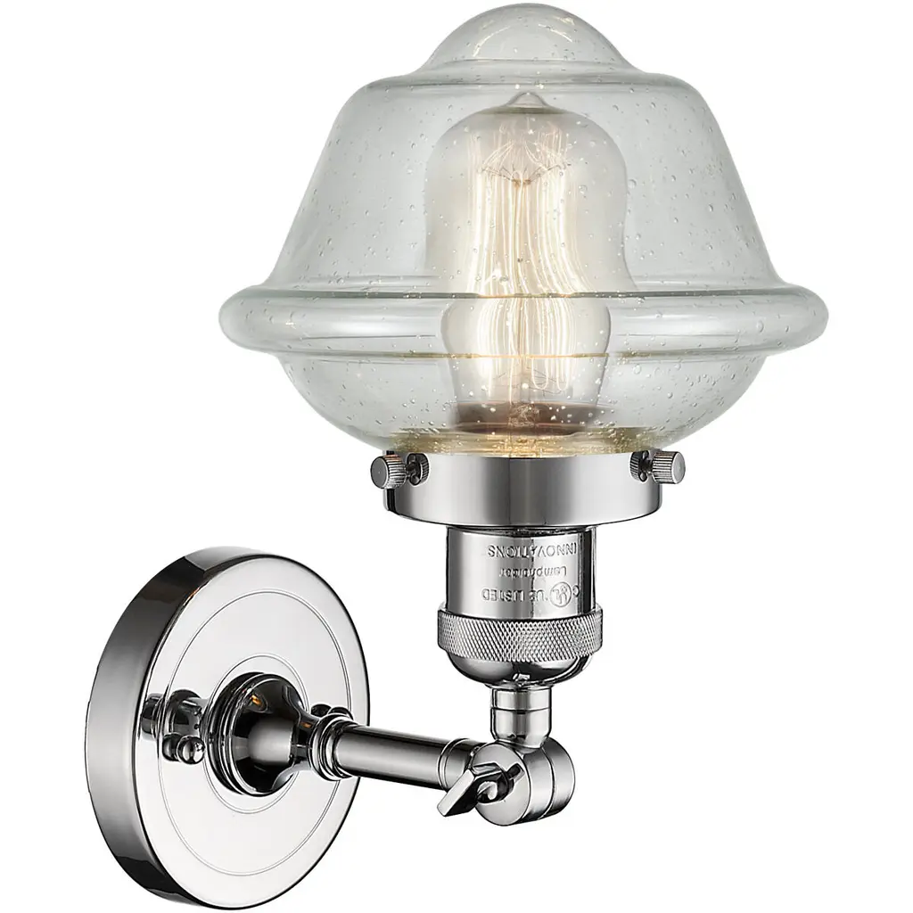Franklin Restoration Small Oxford 1 Light 8 Inch Polished Chrome Sconce Wall Light In Seedy Glass, Franklin Restoration