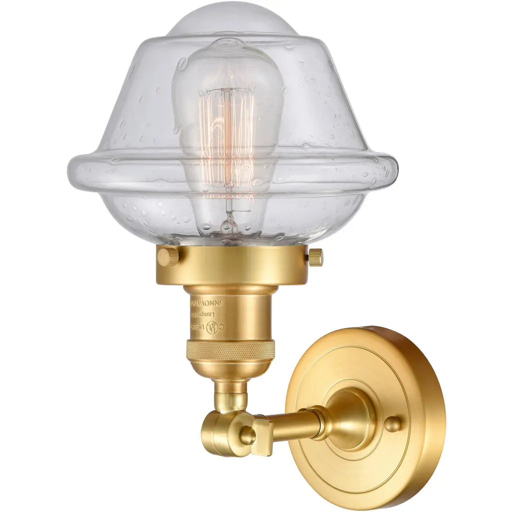Franklin Restoration Small Oxford 1 Light 8 Inch Satin Gold Sconce Wall Light In Seedy Glass, Franklin Restoration