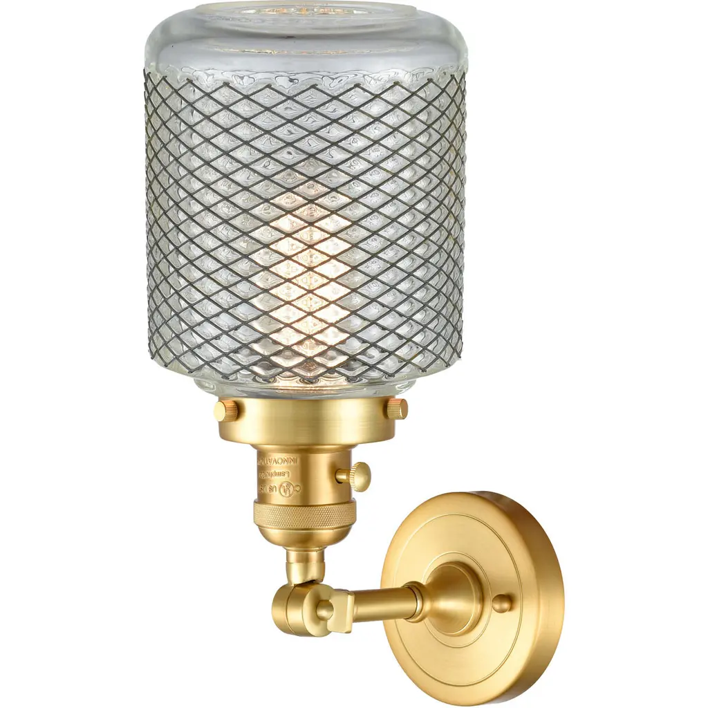 The Stanton 1 Light Sconce is part of the Franklin Restoration Collection. Solid Brass 180 Degree Adjustable Swivel with internal teeth that lock in at 5 degree intervals With Engraved Cast Cup. 3 Way (High-Low-Off) Switch Included on Socket
