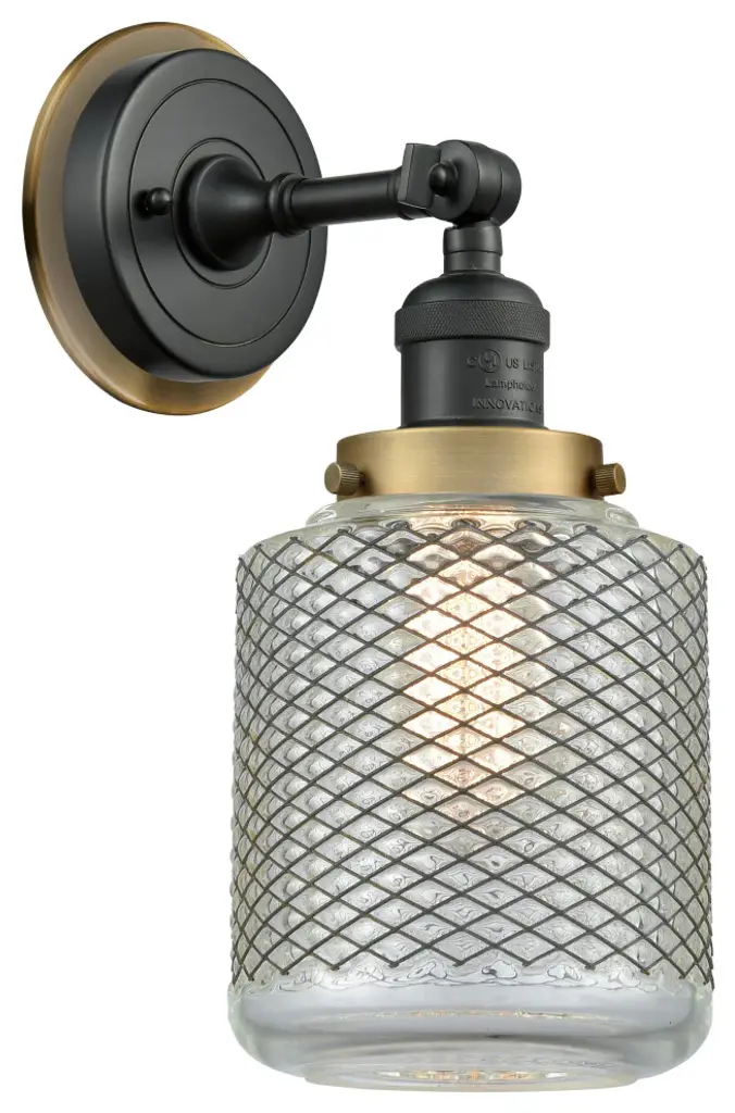 The Stanton 1 Light Sconce is part of the Franklin Restoration Collection. Solid Brass 180 Degree Adjustable Swivel with internal teeth that lock in at 5 degree intervals With Engraved Cast Cup. 3 Way (High-Low-Off) Switch Included on Socket