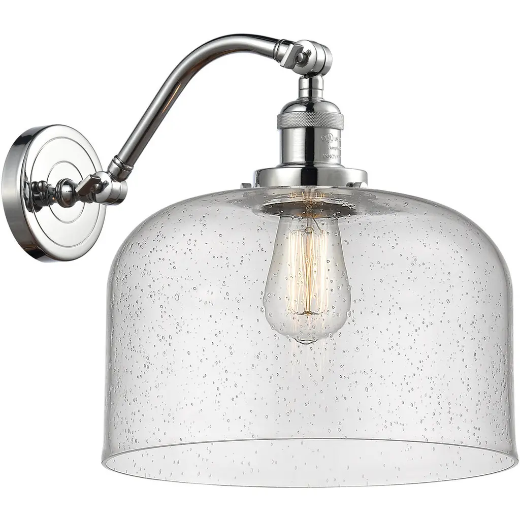 Franklin Restoration X-Large Cone Led 12 Inch Brushed Satin Nickel Sconce Wall Light In Seedy Glass, Franklin Restoration