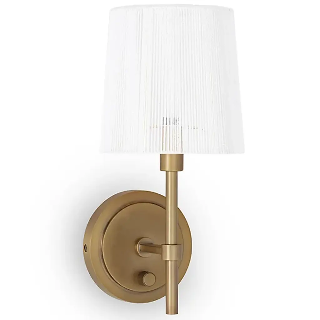 The Franklin Wall Sconce by Regina Andrew is where elegance meets intrigue. Crafted from sturdy steel, this wall sconce exudes durability and sophistication. The shade is made from woven string, adding intricacy and visual intrigue. Featuring a rotary base switch, this sconce offers convenient control over its illumination. Light up your space with a soft, ambient glow emitted by the concealed candelabra-base LED. The string shade adds an element of mystery, allowing glimpses of light to peek through.