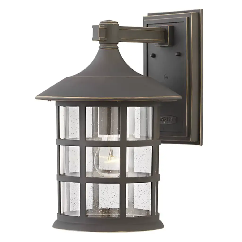 Small and compact for use in exterior living environments, the Freeport Outdoor Wall Sconce by Hinkley Lighting creates a warm and immersive lighting experience while utilizing a familiar yet elevated aesthetic. The fixture’s framework, formed into the classic silhouette of New England coastal fixtures, is created from a durable cast aluminum while clear, seedy glass is used as a diffuser to the internal lamping. These factors allow the piece both durability and the ability to supply a steady stream of warm, comforting light.