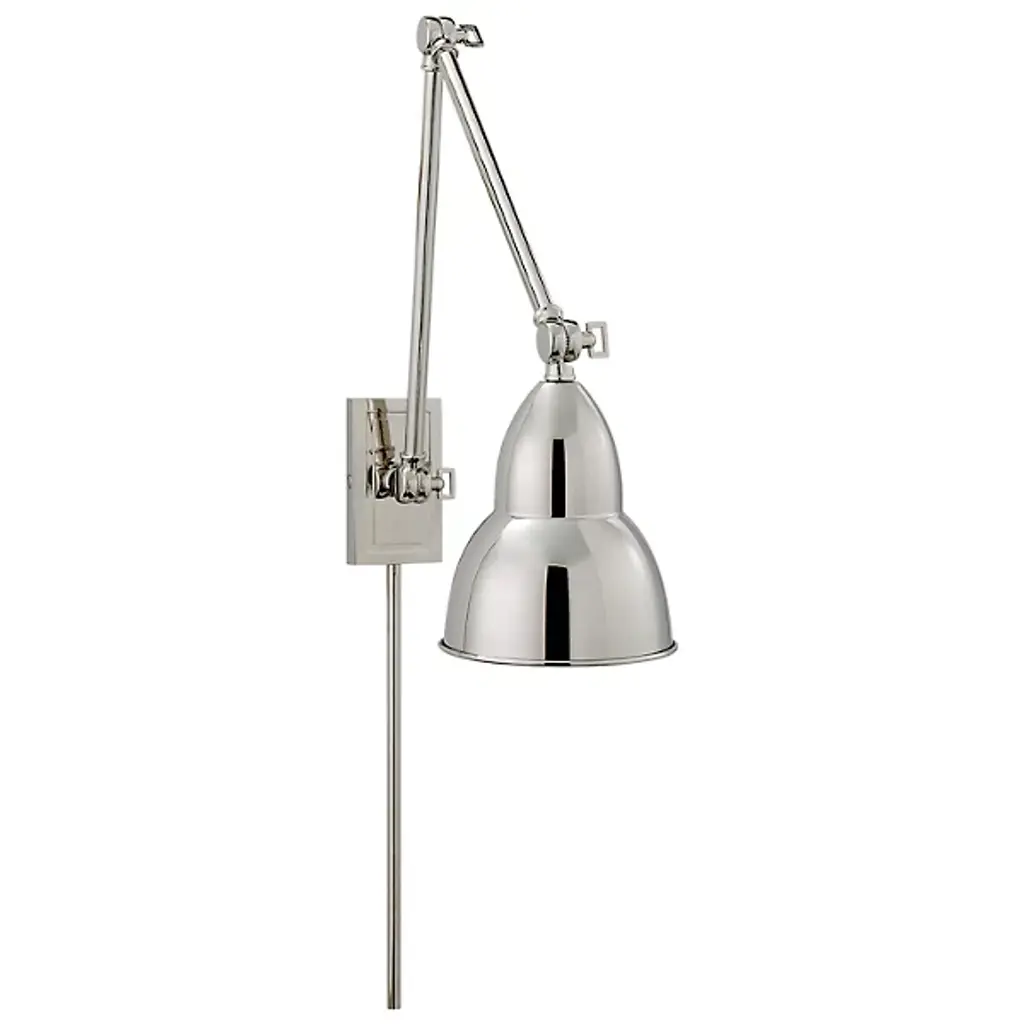 The French Library Double Arm Wall Sconce by Visual Comfort Signature, formerly known as Visual Comfort, is an adjustable reading lamp with a metallic finish that pops. With a shade that directs light wherever necessary, this slim swing arm is a great accessory for living spaces. Featuring an arm that can extend to 31", the French Library Double Arm Wall Sconce is collapsible convenience.