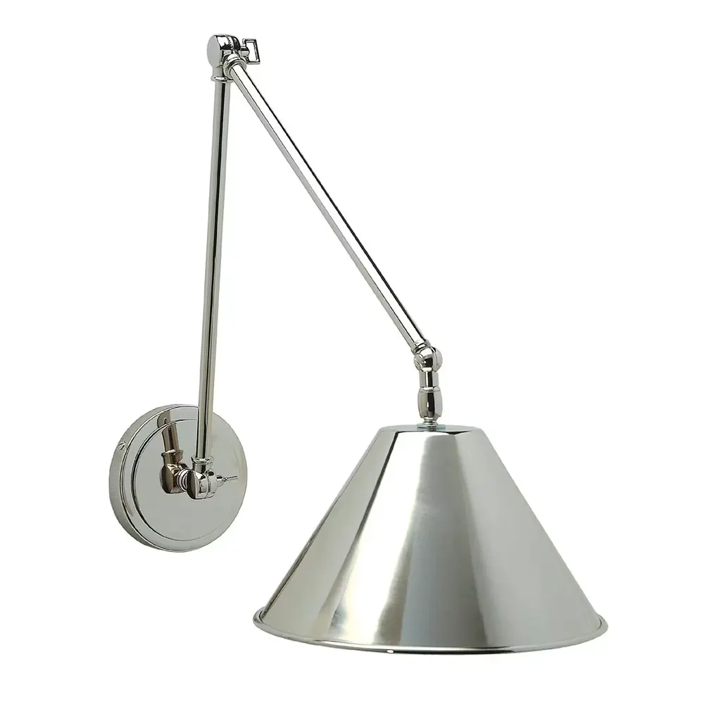 Visual Comfort Signature, formerly known as Visual Comfort,'s French Library Single Arm Wall Sconce has advantageous adjustability -- reaching a length of 20 inches! This single arm can be moved to direct the light for optimal reading conditions. The French Library Single Arm Wall Sconce is function and form with its slim body and metallic finish.