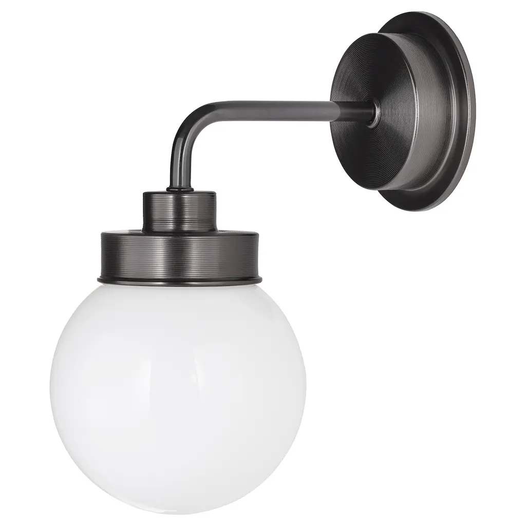FRIHULT Wall lamp - stainless steel color. A versatile lamp that can be mounted facing upwards or downwards, on its own above the mirror or as a pair with one on each side. Perfect to create atmosphere in the bathroom if you use a smart lighting bulb. Tested and approved for bathroom use.