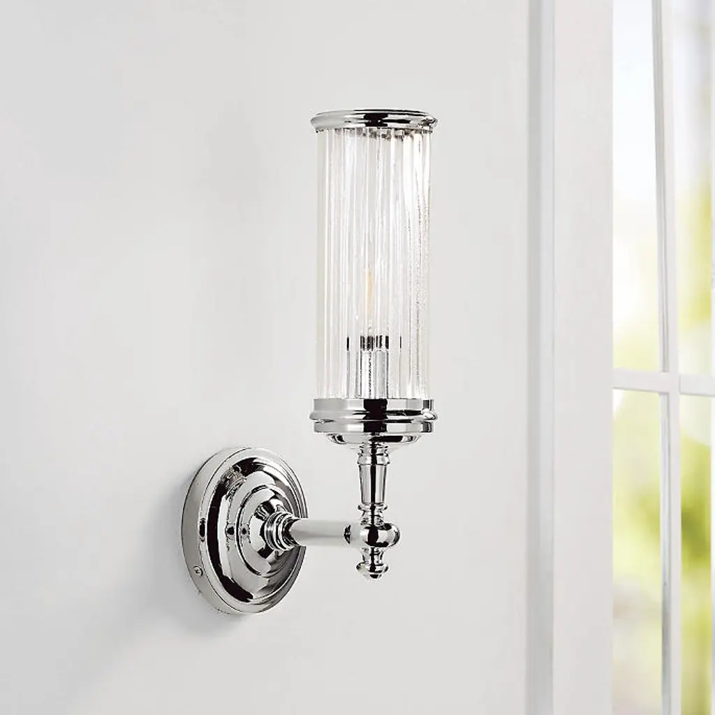 Inspired by other Frontgate Resort Collection™ details, these beautiful lights bring stylish illumination to any outdoor space. Soft curves and fluted glass combine to give this sconce a sophisticated look. Fluted glass shade Steel with polished nickel finish 4-1/4" dia. back plate E12 socket Candelabra bulb type Accommodates bulb up to 40W incandescent or LED equivalent (not included) For a brighter light, use a higher-lumen LED bulb. However, do not exceed recommended wattage. UL Rated for damp environments Hardwire design; professional installation recommended Wipe clean with soft, dry cloth; do not use polishes or cleaners on the lamp Imported A Frontgate exclusive. At Frontgate, our primary focus is quality. We guarantee that every product we sell will stand up to the supreme test – our customers' satisfaction. To learn more about our policies, visit our Shipping & Processing, Returns & Exchanges and Warranty & Price Guarantee pages.