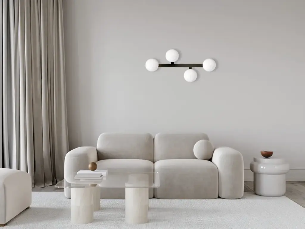 Fuji is a wall/ceiling lamp with milky white blown glass diffuser, 16 cm diameter. Dove grey painted metal frame. GX53 socket.Power 10WLED