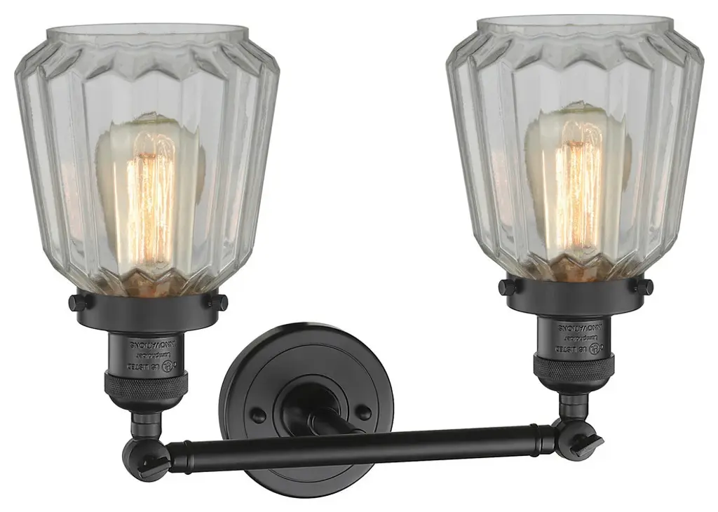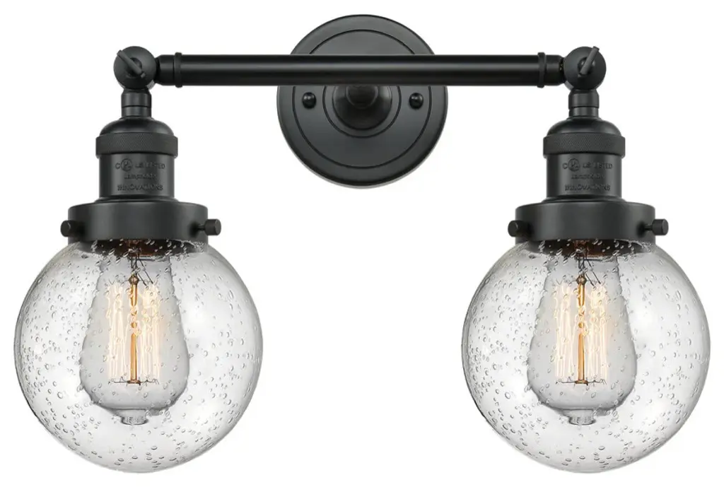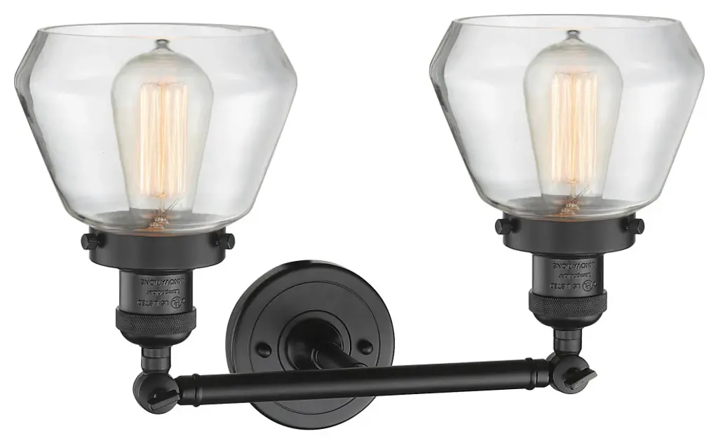 Fulton 2-Light Bath Fixture, Clear Glass, Matte Black