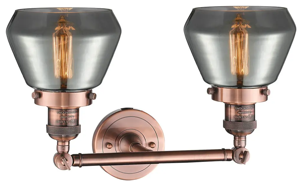 Fulton 2-Light Bath Fixture, Smoked Glass, Antique Copper