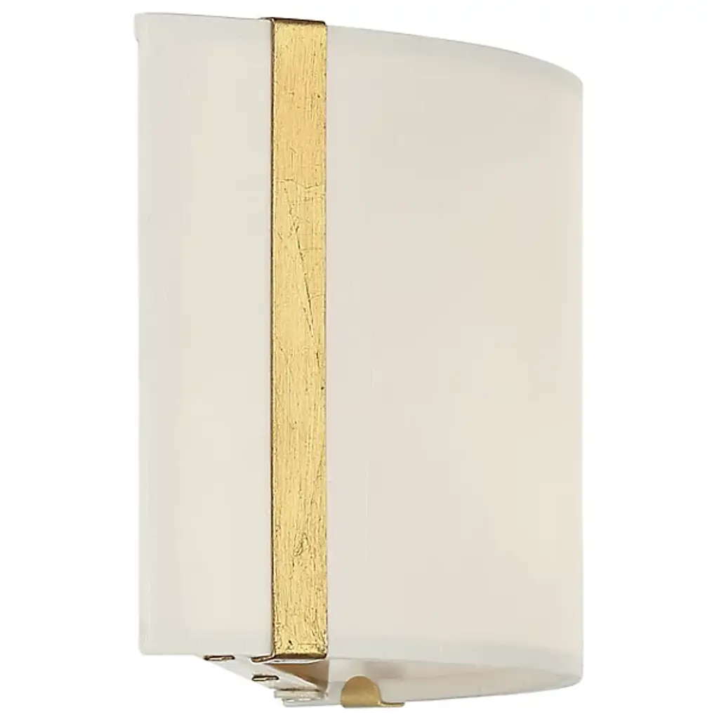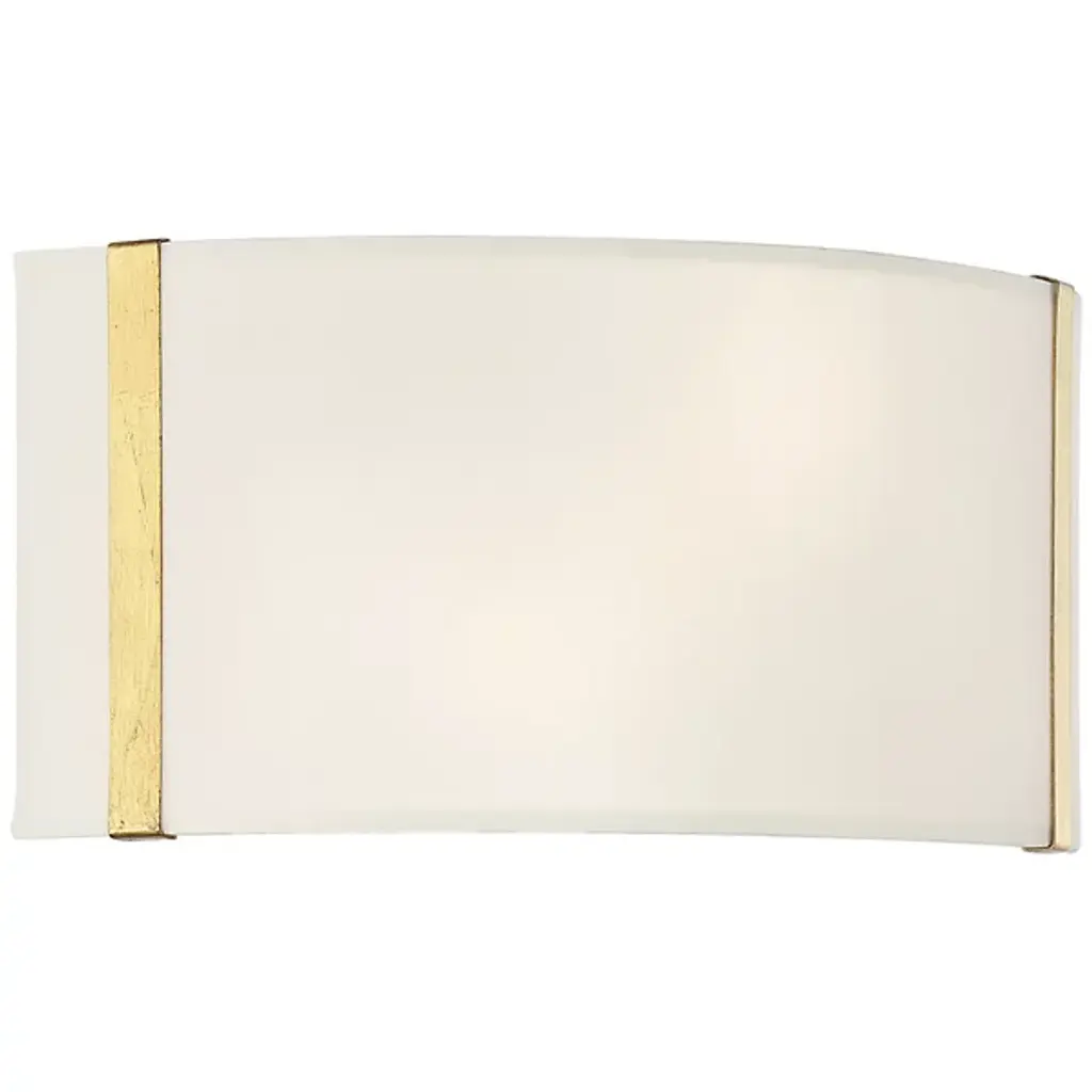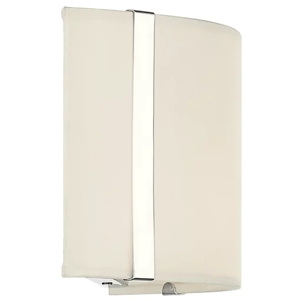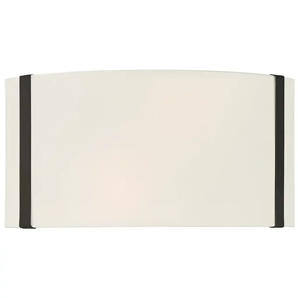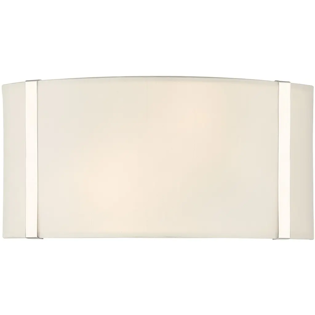 A timeless design suitable for any room, the Fulton Wall Sconce by Crystorama brings a soft glow and sophisticated style to the home. Its layered, double-white silk shade curves over the wall to house its incandescent light source. Thin metal bands support the piece and attach it to a glass diffuser concealed inside, adding a tailored touch while maintaining a simple aesthetic. Its gentle light illuminates surroundings with a pleasant, ambient glow.