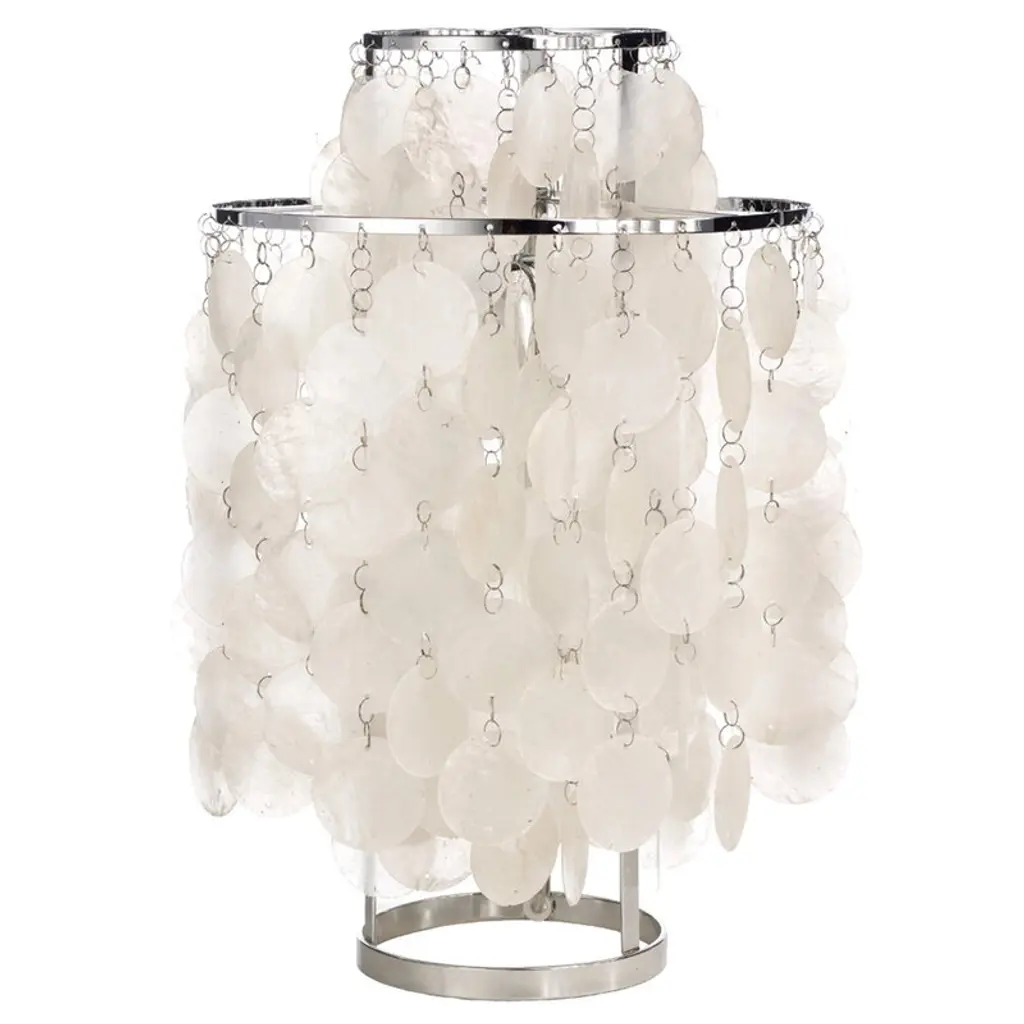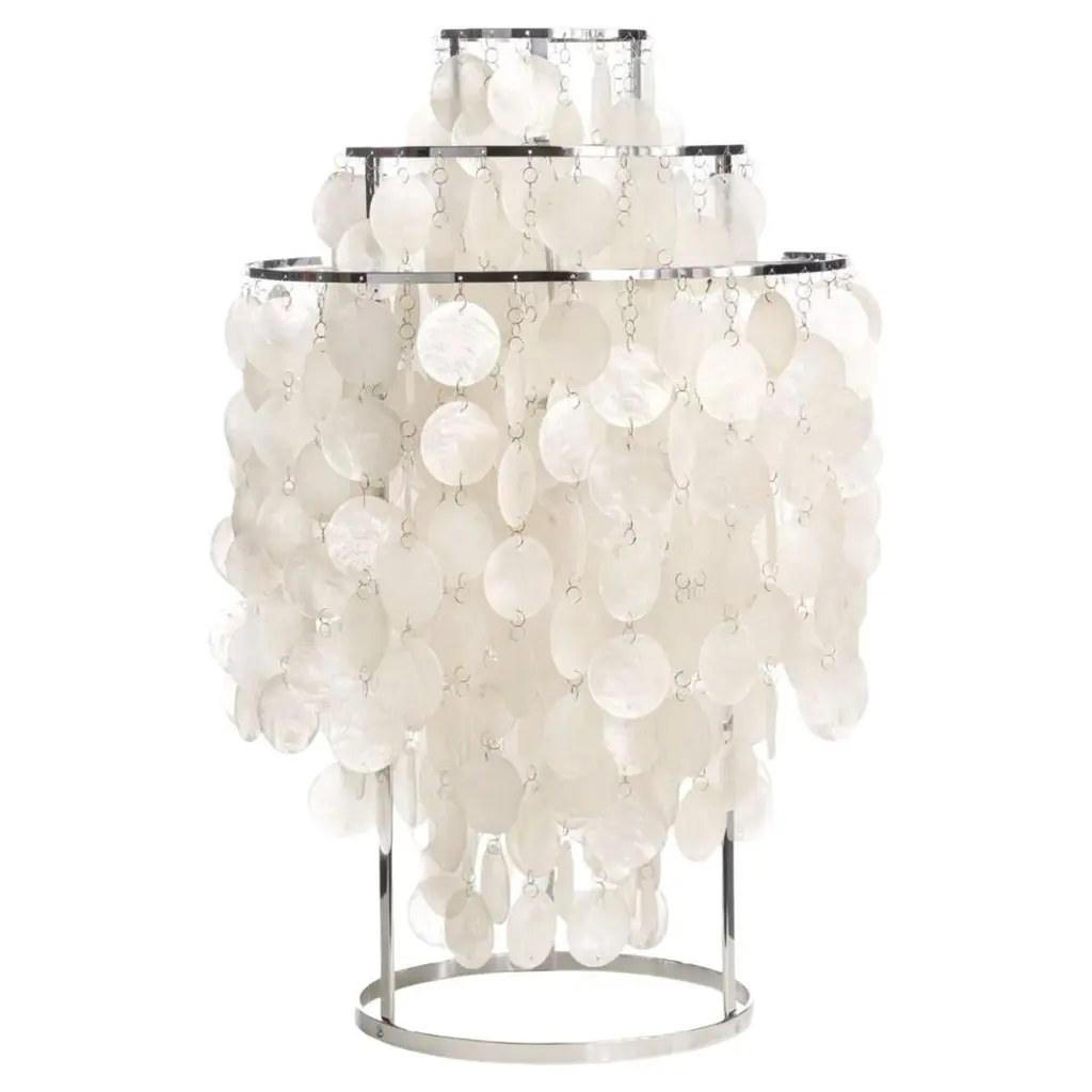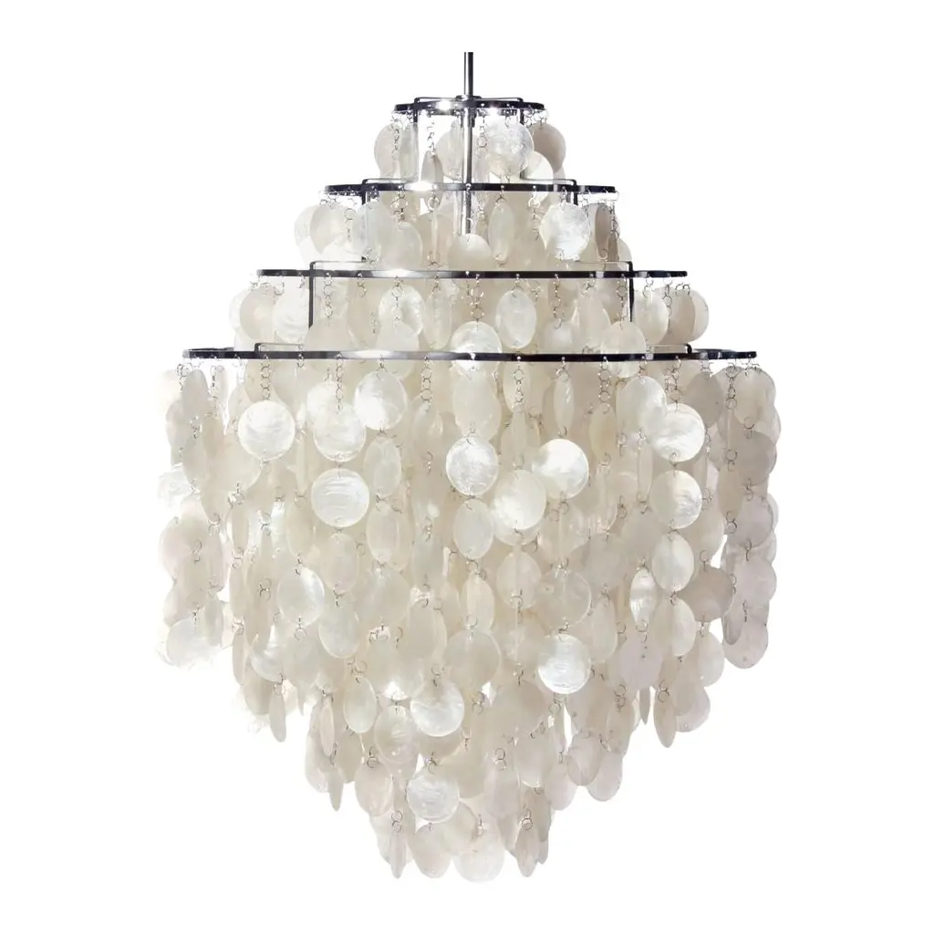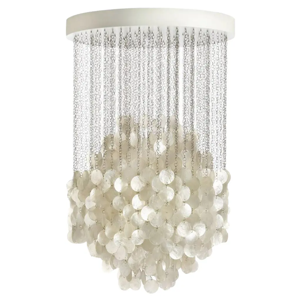 The Fun 1WM Wall Sconce from Verpan is designed by Verner Panton. A collection of metal rings makes up your wall sconce’s sturdy frame. Gorgeous seashell discs are arranged in a waterfall-like arrangement that draws your eye. The discs are held in place by petite looped chains, keeping them well-balanced on your wall. Fun is illuminated by a vibrant LED that illuminates your halls and entryways easily. Place this wall sconce in your contemporary interiors with confidence.