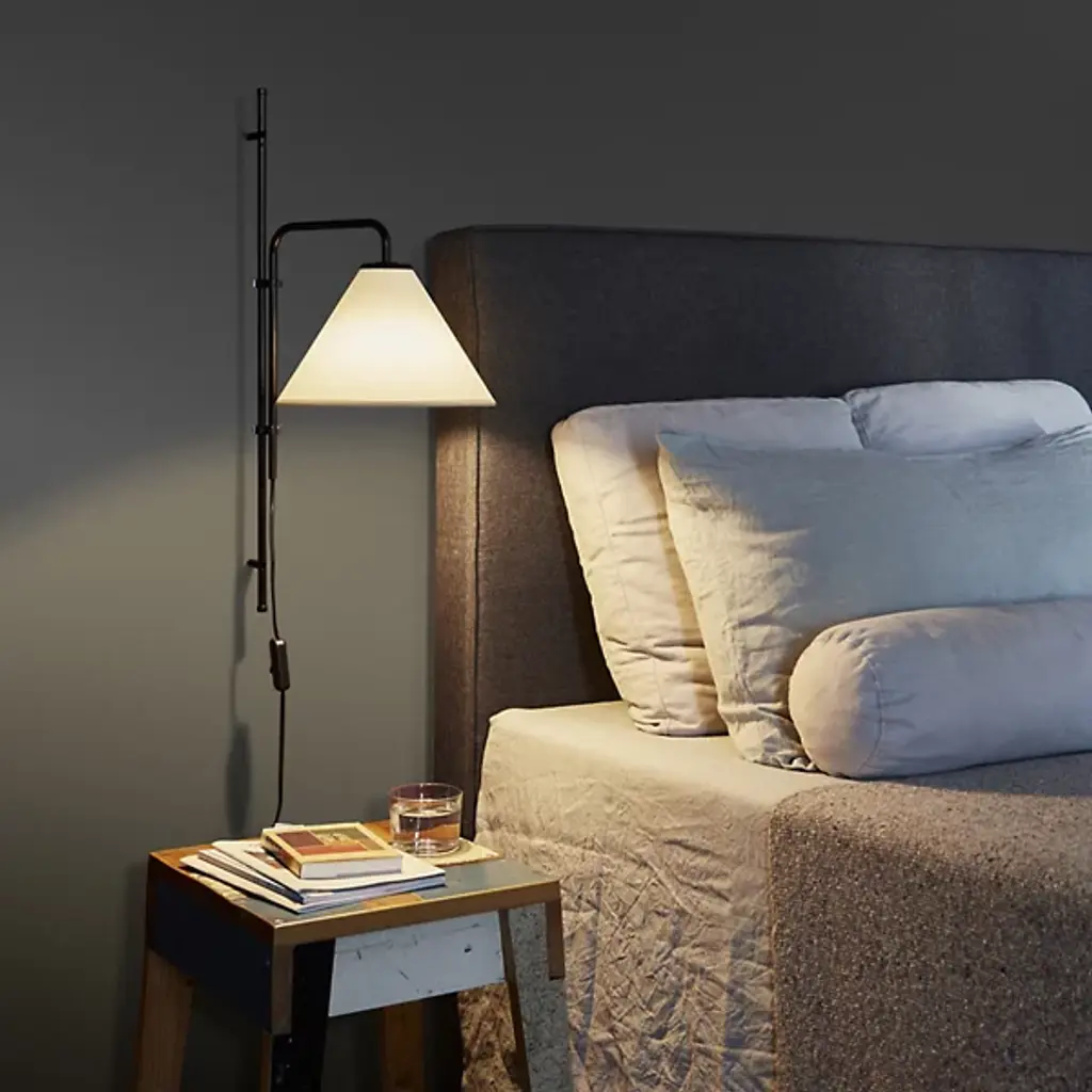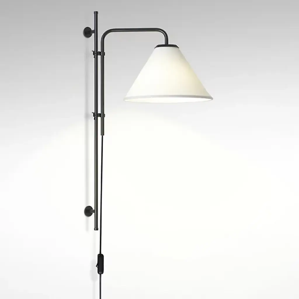 A purist form with a timeless aesthetic. The Funiculi A Fabric Wall Lamp designed by Lluis Porqueras for Marset complements both traditional and contemporary spaces. While Porqueras stays true to his original 1979 design, the addition of a tapered Fabric lamp shade softens the wall lamp’s sleek, functional form and directs the warm white LED light outwards and downwards. Made of lacquered Iron, 2 clamps on the rod allow a height adjustment of up to 10 inches for optimal lighting. An easy to reach on/off switch on the cable makes for practical bedside lighting. Equip this wall lamp with an E12 LED bulb and it becomes a sophisticated reading lamp in a library or sitting room.