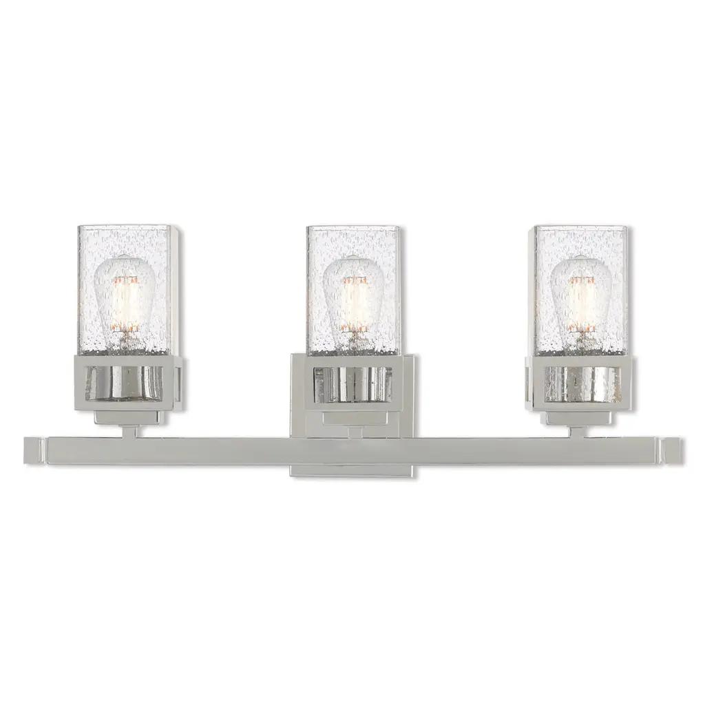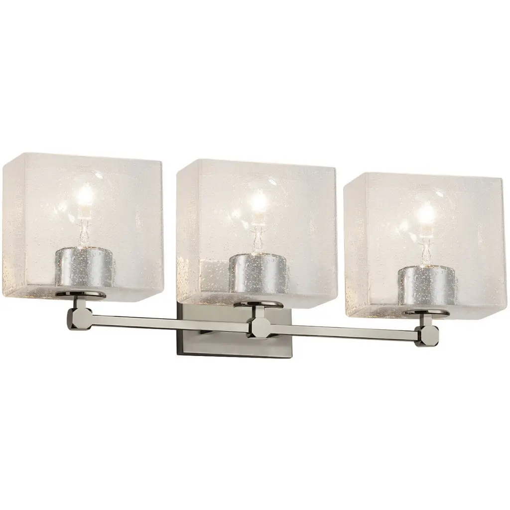 Fusion 3 Light 22 Inch Polished Chrome Bath Bar Wall Light In Rectangle, Incandescent, Seeded Fusion, Rectangle