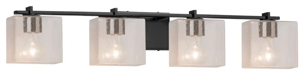 Fusion 4 Light 35.5 Inch Brushed Nickel Bath Bar Wall Light In Rectangle, Incandescent, Seeded Fusion