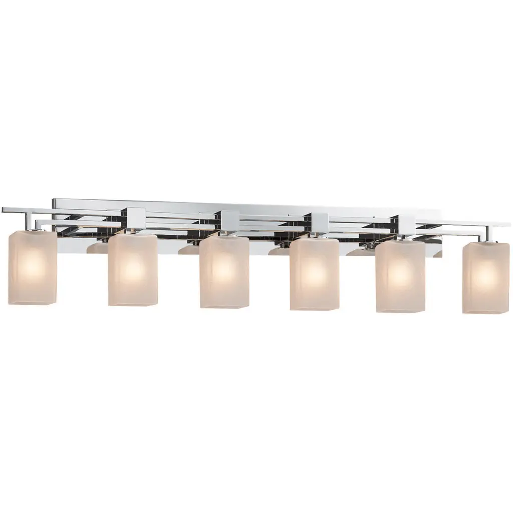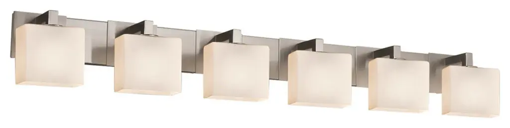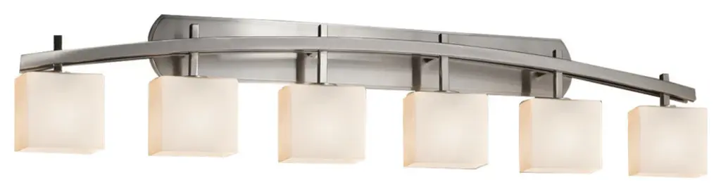 Fusion - Archway 6-Light Bath Bar - Rectangle - Brushed Nickel Finish - Opal Shade - LEDThe Fusion Collection offers a wide selection of handcrafted artisan glass shades. These beautiful artisan glass finishes complement the clean designs of the Justice Design fixtures.Features:This fixture can be installed as an uplight or downlightDimming is compatible with Incandescent/Triac or ELV dimmersLocation Rating: DampUL CertifiedSpecifications:Wattage: 9Bulb Type: LEDVoltage: 120Lumens: 4200CRI: 80Bulb Included: YesBulb Count: 6